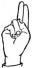 На ћирилици написано НИКОДИЈЕ ДРНДАРЕВИЋ састоји се из 18 слова [?]. Исписано ћириличном једноручном азбуком за глувонеме: